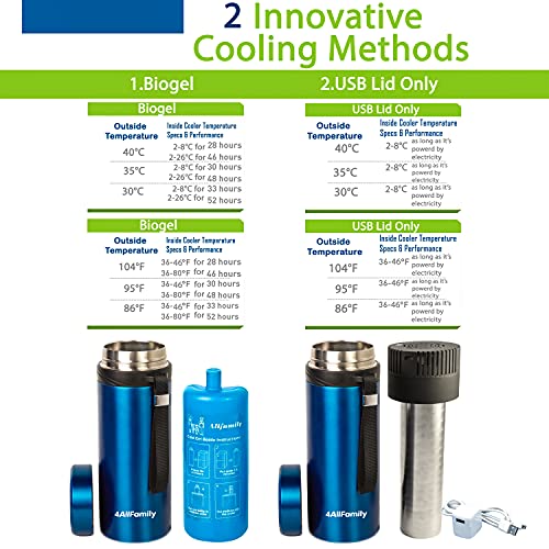 ✔️ [Innovative Medical cooler] –>This new 4ALLFAMILY medical cooler is masterfully designed to keep your expensive supplies SAFE. The new USB lid can deliver an outstanding maximum temperature drop of 50 Fahrenheit compared with outside temperature.