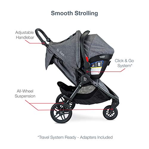 BRITAX TRAVEL SYSTEM: includes B-Free stroller (birth to 50lbs), B-Safe Gen2 FlexFit infant car seat (4-35lbs & up to 32”), car seat base & Click & Go adapters