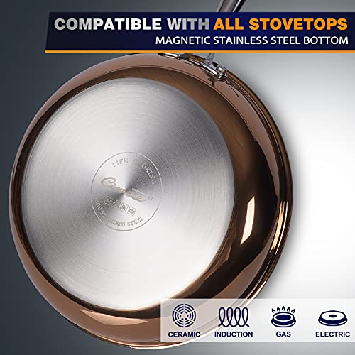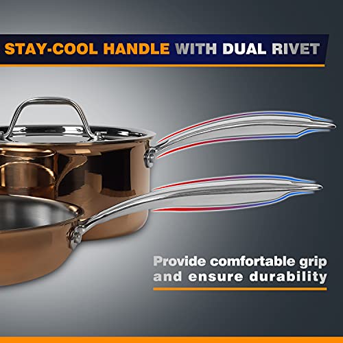 Ciwete Copper Tri-ply Stainless Steel Cookware Set, Kitchen Pots and Pans Set 10-Piece