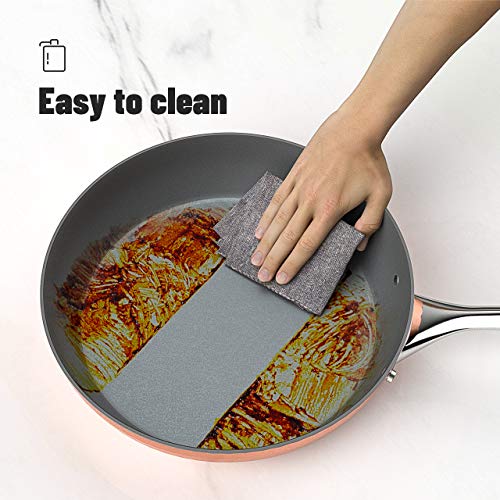 【Secure Non Stick Ceramic Coating】High quality materials guarantee long-term use and secure.It requires less oil or fat while cooking. No PTFE, PFOA and cadmium and any other harmful chemicals