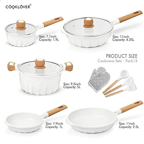 Cookware Set Nonstick 100% PFOA Free Induction Pots and Pans Set with Cooking Utensil 13 Piece – White
