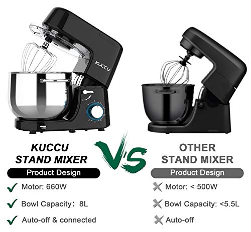 KUCCU Stand Mixer, 8.5 Qt 660W, 6-Speed Tilt-Head Food Dough Mixer, Electric Kitchen Mixer with Dough Hook, Flat Beater…