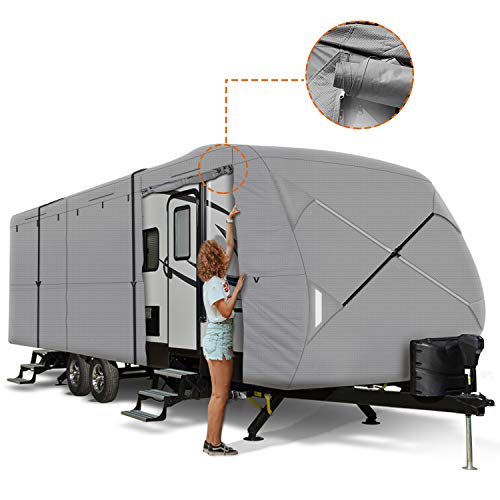 [Durable Material]: Upgraded the top panel fabric to extra thick 4-ply non-woven fabric mixed with Anti-UV Composite and waterproof membrane, upgraded 110g non-woven fabric side protect against rain,snow and scratches. Reduces premature aging of RV and helps maintain resale value.