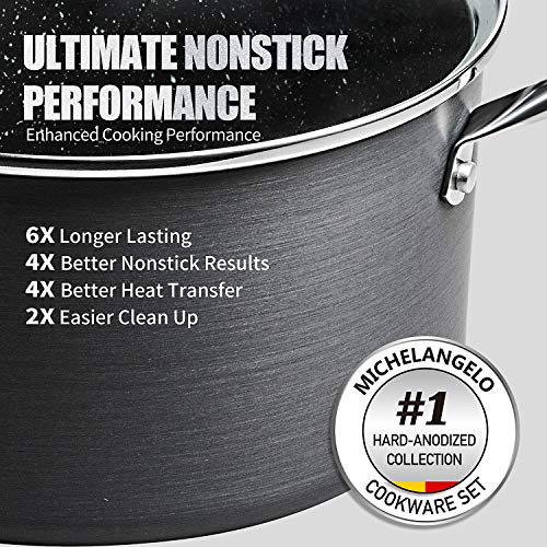 MICHELANGELO Hard Anodized Cookware Set, 10-Piece Pots and Pans Set Nonstick with Granite Interior, Non Toxic Cookware…