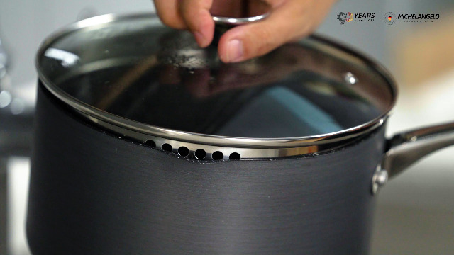 STRAINING LID & POUR SPOUT DESIGN- The built-in strainer in the cover of hard anodized cookware set makes it easy to drain water from pasta, vegetables, rice or beans without using a separate colander. The pour spout helps make transferring liquids easy without mess. Shatter-resistant glass lid locks in flavor and nutrition.