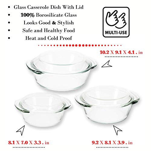 ✅ ONE FOR ALL YOUR NEEDS : This glass pyrex casserole set with lids comes in different sizes to resolve all your kitchen serving needs , smaller size to serve your snacks like pohas and bigger size to prepare and serve your salads , curries and dals, an amazing basic kitchen set.