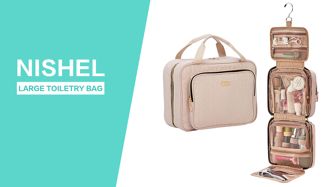 NISHEL Large Size Toiletry Bag for Women, Travel Essentials Organizer, Hanging Makeup Case for Accessories, Cosmetics…