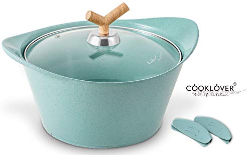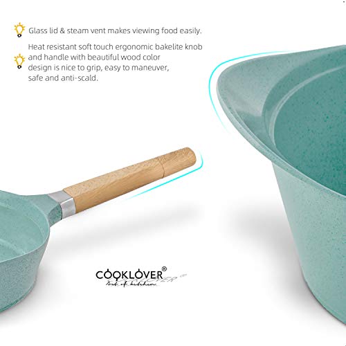 ►ERGONOMIC BAKELITE KNOB AND HANDLE ►COOKLOVER’s cookware sets builds with heat resistant soft touch silicone Bakelite knob and handle with beautiful wood grain design (NOT REAL WOOD).
