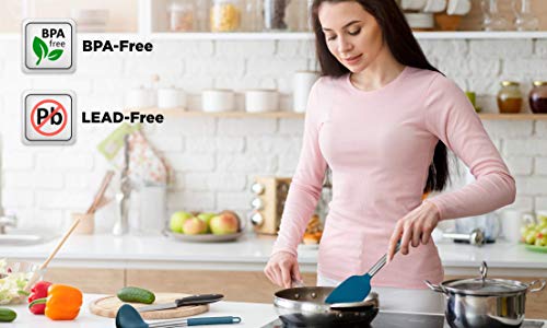 ✅ COOK WITHOUT WORRIES: The entire kitchen cooking utensils set is made from food-grade silicone. Enjoy peace of mind knowing that every meal you cook is safe for your family.