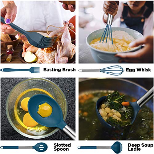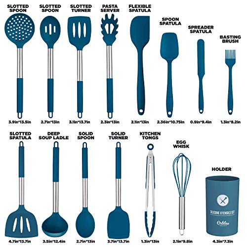 ORBLUE Silicone Cooking Utensil Set, 14-Piece Kitchen Utensils with Holder, Safe Food-Grade Silicone Heads and Stainless…