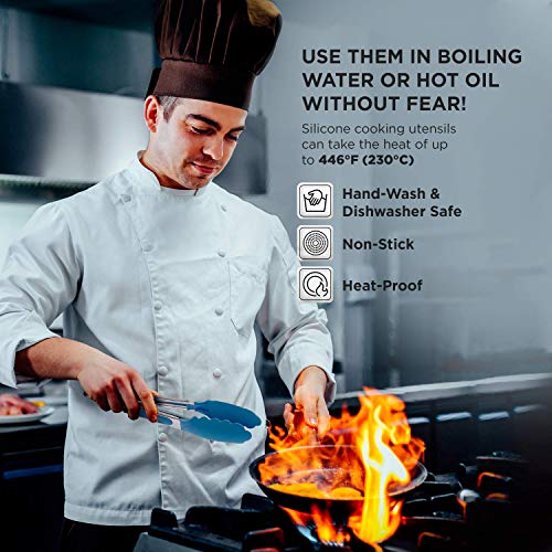 ✅ BUILT TO LAST – The non-corrosive stainless steel handles have heat-proof silicone covers to protect your hands from burns. The heads are made from durable silicone. These cooking utensils were built to be a one-time purchase to last for generations.
