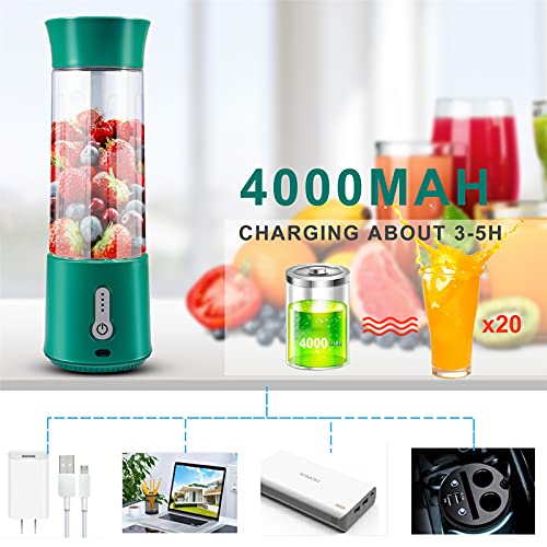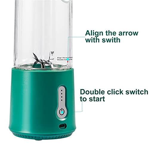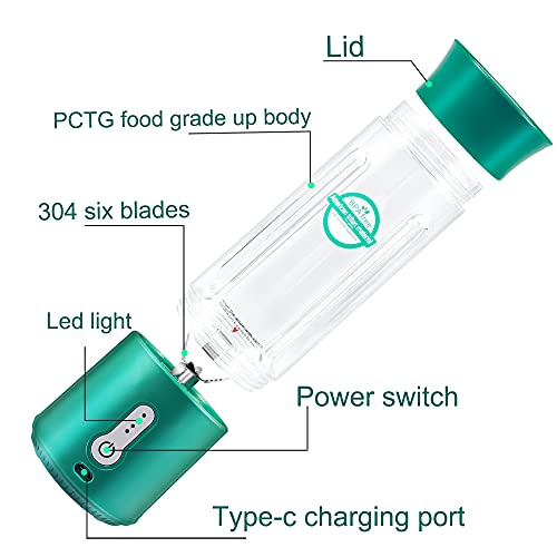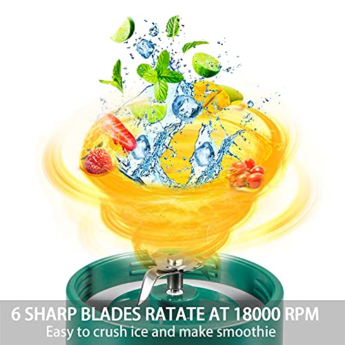 New Upgrade 6 Blades & Power System: This portable blender is equipped with 6 ultra-sharp 304 stainless steel blades, and 7.4 V pure copper motor. With a higher level of rotation frequency about 1,8000 times per minutes, it only takes 30 seconds to bring you a cup of protein shakes, fresh juices, baby food etc.(Attention! Double-click the switch to open, single-click to close)