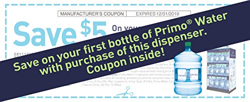 Sleek design and convenience meet with this Primo Deluxe Bottom Loading Water Dispenser. This bottom loading water cooler provides access to cool, ice-cold or piping hot water in an instant with push button controls. Simply place the drip tray, load a 3 or 5 gallon bottle of Primo water and start hydrating in no time, no plumbing or installation required. Whether you choose a 3 or 5 gallon bottle of Primo Purified Water with Minerals or you refill your own bottle at a Primo Self-Service Refill Station, our multi-step reverse osmosis process ensures you’ll be drinking high-quality water. To help you get started, we’ve included coupons with your dispenser purchase to try both options at one of thousands of retail locations in the U.S. Start drinking more water with this energy star rated, bottom loading water dispenser today!