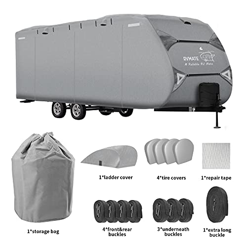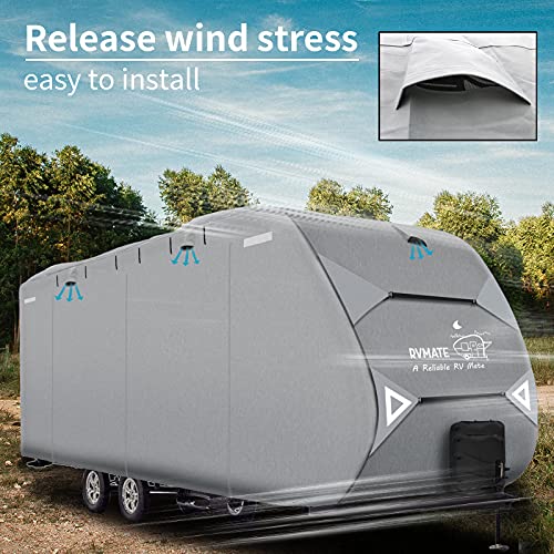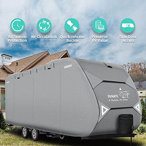 RVMATE Travel Trailer Cover, RV Cover for 24’-27’, Camper Cover with Quick Side Door Access, Air Vent Design, with…