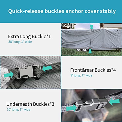 Durable RV cover 4 layers top protects your trailer against rain, wind and snow. Protect your RV and reduce black streaks during long-term storage, ideal item for preserving RV value.