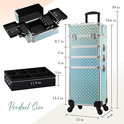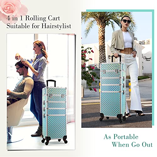 Stagiant Rolling Makeup Train Case Large Storage Cosmetic Trolley 4 in 1 Large Capacity Trolley Makeup Travel Case with…