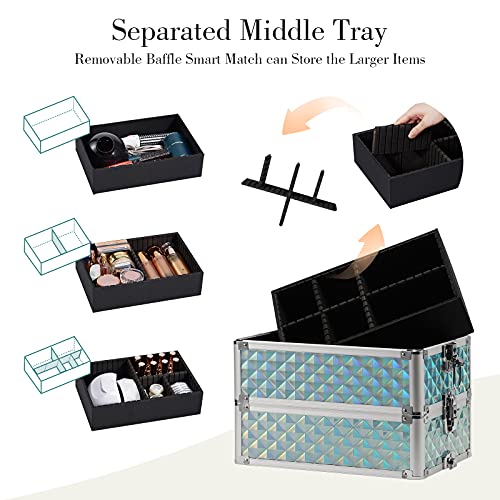 【Large capacity Trunk Case】:The separated middle tray with removable baffle smart match. According to the different size of gadget, you can arranged space, not only neatly placed items and can be fixed to prevent shaking and falling damage. There is also a large bottom has a great storage for hair styling tools, cosmetics and nail tools. Perfect for professional makeup artists, hairstylists, manicurists, tattoo artists or those who have a mountain of cosmetics.