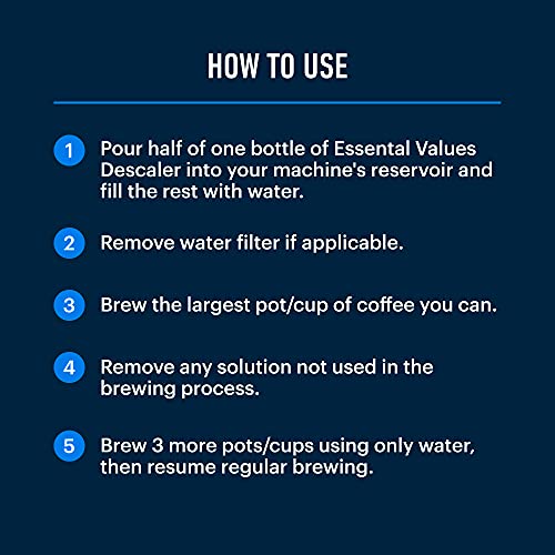 Powerful & Versatile: Our 2-Pack coffee descaler and cleaner isn’t just another Keurig descaling solution it’s a non-toxic, multipurpose solution meant to remove mineral and limescale deposits on a wide variety of machines. It deeply penetrates oil and can work as a decalcifier for other home appliances. When it comes to coffee maker cleaner and coffee bar accessories, Essential Values coffee descaler is a no-brainer