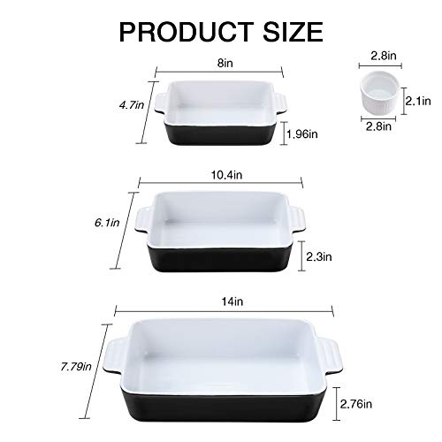 Vexilsy Baking Dish Set, Ceramic Bakeware Set Includes 3 Rectangular Nonstick Casserole Dish, 4 Ramekins, Silicone Mini…
